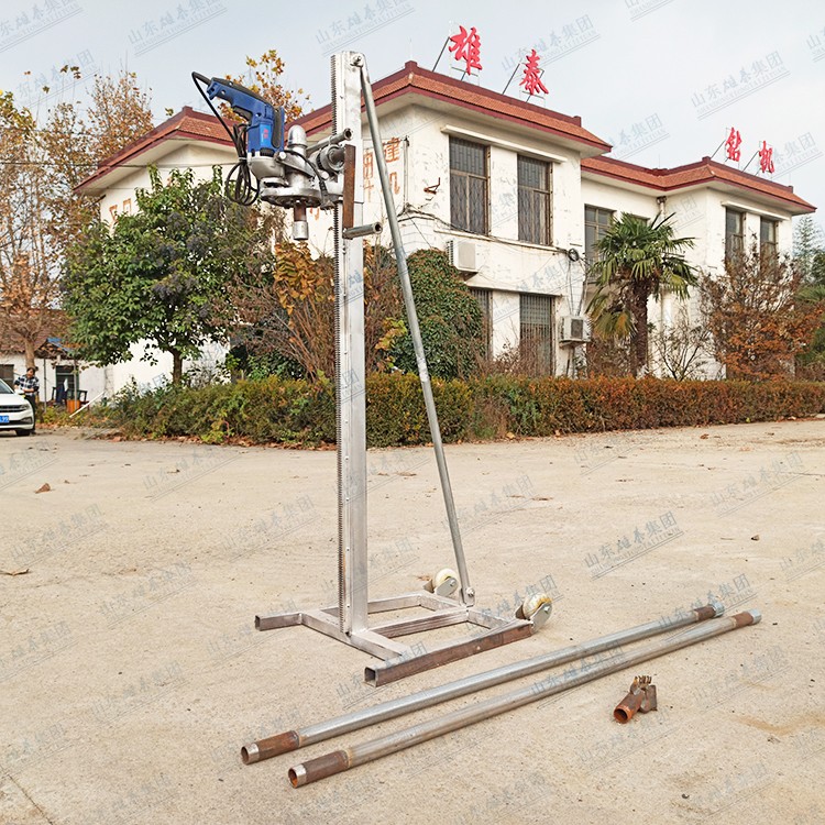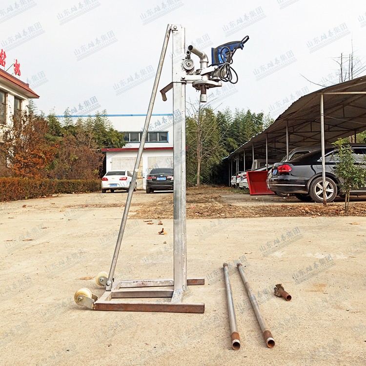 本款打井機(jī)采用了多齒輪設(shè)計(jì),雖然增加了生產(chǎn)成本和制造工藝,但這樣設(shè)計(jì)增加了打井機(jī)力量(就像汽車(chē)一檔比四檔有力、還便于掌握一樣的道理),打井有力,打井速度快、便于掌握。如果齒輪少了,一千瓦的電機(jī)還沒(méi)有七百多瓦的電機(jī)力量大、而且轉(zhuǎn)速高、打井時(shí)難于掌握。這款多齒輪結(jié)構(gòu)鉆井機(jī)經(jīng)過(guò)許多用戶多年使用,打井效果非常理想!便攜式小型民用電動(dòng)打井機(jī)廣泛應(yīng)用于家庭/工廠生活用水打井、農(nóng)田灌溉水井、安裝水空調(diào)、工地打樁等。本公司生產(chǎn)的便攜式小型民用電動(dòng)打井機(jī)機(jī)頭,可隨意選配鉆頭,鉆頭價(jià)格另算。也可另配鉆桿,鉆桿直徑是32mm、一根長(zhǎng)約1.5米。