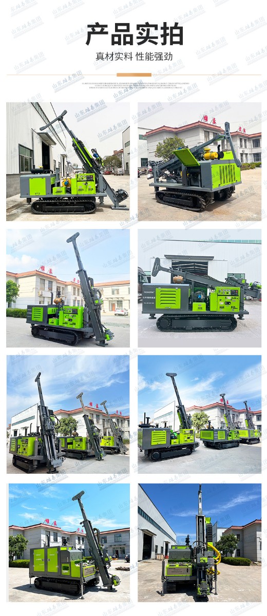 山東雄泰集團自主研發(fā)生產(chǎn)的履帶式全液壓鉆機的無線遙控行走、液壓桅桿自動升起,動力頭自動左側(cè)移機提鉆為該款鉆機一大特色。其中桅桿自動升起,動力頭移機為我公司實用新型專利,極大緩解了現(xiàn)場施工的難度,有效減小了鉆機施工人數(shù),節(jié)約了成本,該履帶式全液壓鉆機分別采用76KW/115KW發(fā)動機,動力強勁,扭矩大,適用于各類復雜地層的金屬礦開采。
